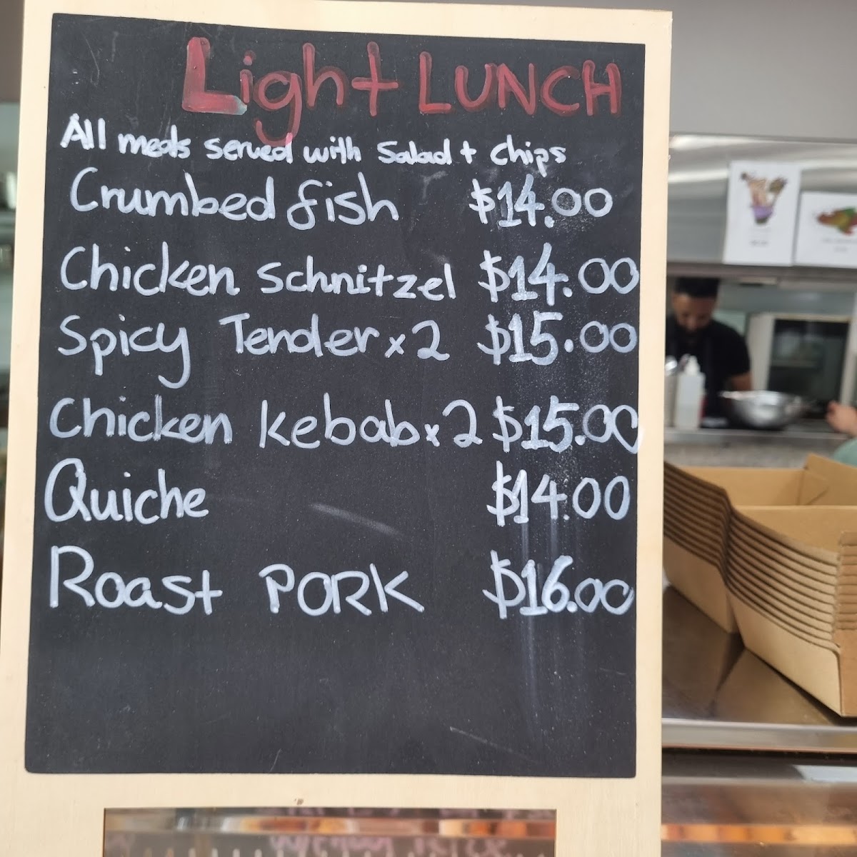 The carvery selection encompasses traditional roast-style dishes, including Roast Sandwich with Gravy, Roast Meat with Chips and Gravy, Chicken Schnitzel, and Chicken Parmigiana, catering to those seeking hearty meal choices.