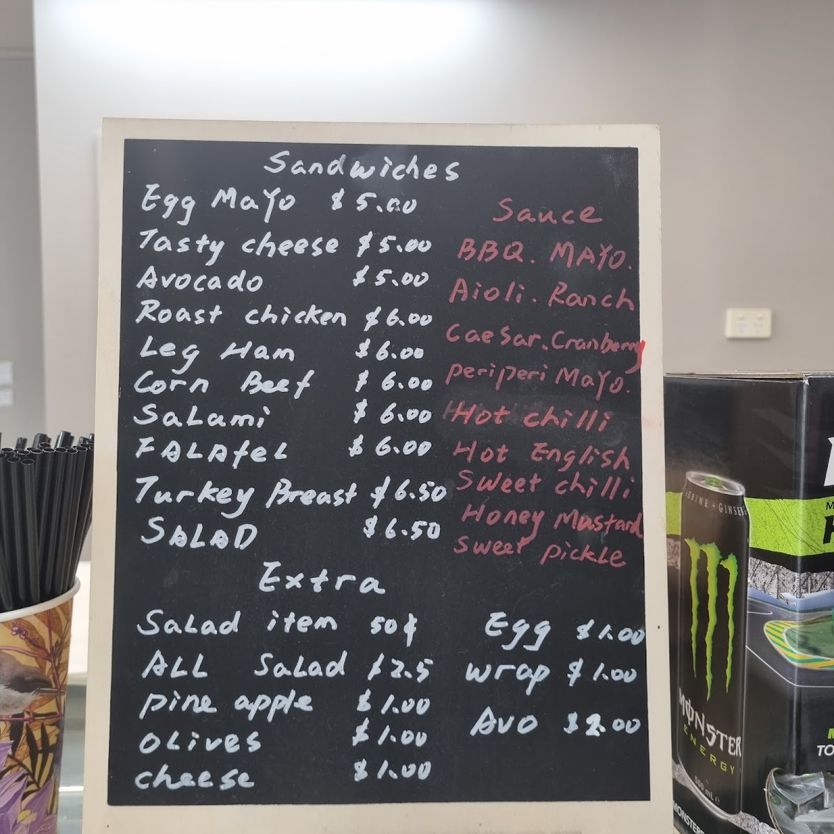 The toasties section includes sandwiches such as Chicken, Cheese, and Mayo combinations, as well as variations like BLT and Chicken Caesar served on Turkish bread. These items are suitable for lighter meals or snacks.